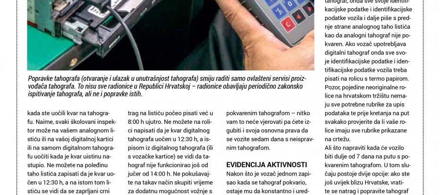 Sve se, prije ili kasnije pokvari! Pa i tahograf (ili vozačka kartica), vjerojatno najvažniji instrument svakom vozaču kojim zapisuje i dokazuje sve svoje radne aktivnosti. Pokušat ćemo ukratko objasniti što treba napraviti i kako zapisati svoje radne aktivnosti kada se tako nešto dogodi.
